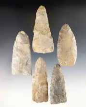 Set of five assorted Paleo knives recovered in Ohio. Largest is a 3 5/16". OHIO 130.00