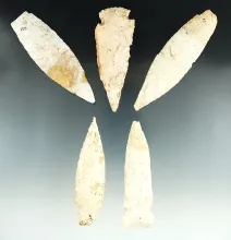 Group of five Missouri Lanceolates, largest is 4 11/16". | MISSOURI | 120.00 | |