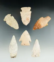 Group of six assorted Missouri points, largest is 2 3/4". | MISSOURI | 70.00 | |