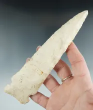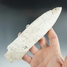 Large 6 1/2" Etley Knife - white Burlington Chert found in Monroe Co., Missouri. 2 COAs. |