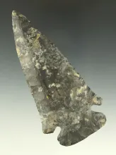 4 1/8" Coshocton Flint Wide Base Dovetail, minor restoration to the tip and one barb. |