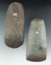 Pair of Hardstone Celts with excellent use polish to bits, both found in Ohio. Largest is 5". |