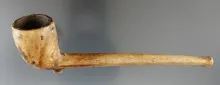 3 1/4" Owasco clay pipe - broken & mended at the elbow and some restoration at mouthpiece NEW YORK 300.00