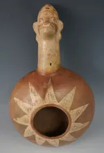 Excellent craftsmanship on this 8 1/2" Moche culture Leg Pot with ornate sandal detail. Peru. |