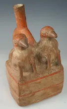 6 1/2" Tall double Avian Effigy Sican culture Stirrup Bottle from Peru. |