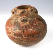 2 5/8" tall x 3" wide painted Human Effigy bottle found in Costa Rica. |