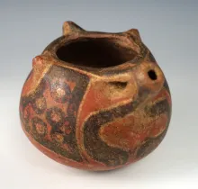 4" wide x 3" tall Pre-Columbian Zoomorphic pottery vessel from Costa Rica. Very nicely painted. |