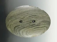 4 1/4" Drilled shell gorget found on the Goldcamp site in Lawrence Co., Ohio over 50 years ago. OHIO 220.00