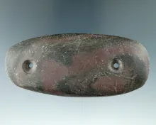 3 11/16" Glacial Kame Bar Gorget made from red and black Mottled Slate, found in Pickaway Co., Ohio.