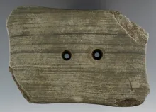 2 3/8" Miniature Four Hole Gorget made from black Slate, found in Paulding Co., Ohio. Ex. Mink. OHIO 225.00