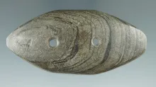 3 13/16" Glacial Kame Elliptical Gorget - Banded Slate, found in Licking Co., Ohio. Bennett COA. |
