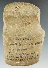 3 1/4" Long 3/4 Grooved Axe found in May 1958 by Don Magnani in Gallia Co., Ohio. |