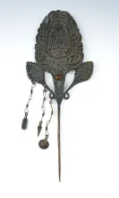 Very ornate 8 7/8" Tall Metal Tupi Pin, Inca Culture, circa 1550. Found in Peru. 200.00