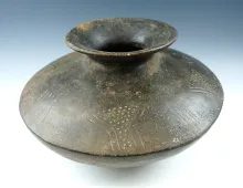 Excellent style and designs on this 10" Wide x 6" Tall black and brown Pottery Vessel. 250.00