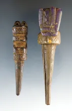 Pair of Inca Lime Container Stoppers that are beautifully carved. One has a stone applique. 40.00