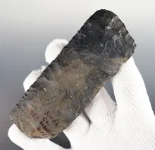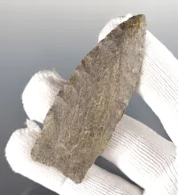 3 5/8" undrilled Pendant or Gorget made from Slate. Found in Crawford Co., Ohio. Ex. Turner. |