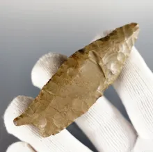 3 1/4" Ohio Hopewell made from exotic colored Flint Ridge Flint. Comes with a Bennett COA. |