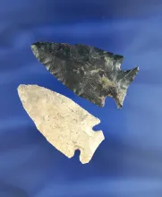 Pair of Intrusive Mound Points found in Richland and Hardin Co., Ohio, largest is 2 1/8". |
