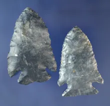 Pair of Coshocton Flint Arrowheads found in Ohio including a 2 1/8" Notched Base Dovetail. OHIO 85.00