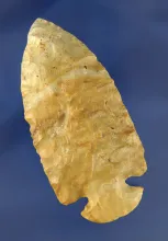 3 1/4" Coshocton Flint (Nellie Variety) Notched Base Dovetail found in Madison Co., Ohio. |