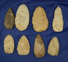 Set of eight Flint Blades found in Ohio, largest is 3 13/16". |