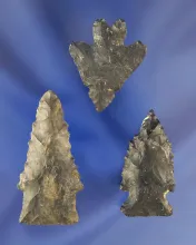 Set of 3 Coshocton Flint Dart Points, largest is 1 7/8". Found in Ashland Co., Ohio. |