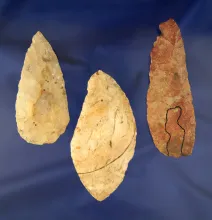 Set of 3 Flint Knives found in Ohio and Illinois. Largest is 4 1/8". |