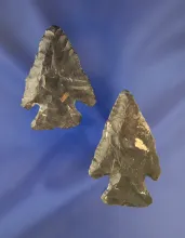Pair of Flint Ridge Flint Adena Arrowhead found in Ohio, largest is 2 9/16". |