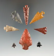 Set of 8 nice arrowheads found in the Klickitat Co., Washington, largest is 1 7/16". |