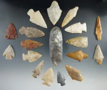 Group of 18 assorted arrowheads in nice condition found in Texas and Oklahoma. Largest is 3 1/8". |