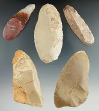 Set of five W. Texas flake Knives with excellent edge work. One is made from Alibates. |