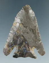 3 5/8" mottled Fort Payne chert Hardin barbed found in Caldwell Co., Kentucky. |
