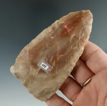 Thin and incredibly well flaked 4 3/8" heavily patinated Buck Creek found in Kentucky. |