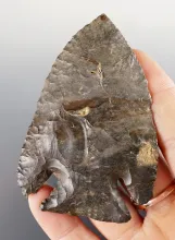 Beautiful 3" Archaic Deep Notch Bevel made from Coshocton Flint. Found in Franklin Co., Ohio. |
