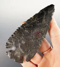 Large 5 1/2" Knife made Plum Run Flint. Found in Shelby Co., Ohio. Ex. William Quinn. |
