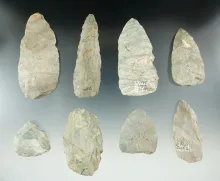 Group of 8 Assorted Blades all made from Attica "Indiana Green" Chert, largest is 3 3/8". | INDIANA | 135.00 | |