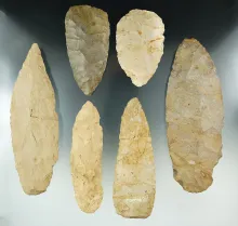Group of six large blades found in the Indiana area, largest is 6 3/4" long. | INDIANA | 130.00 | |