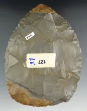 Large! Heavily patinated 5 5/8" Hornstone Blade with nice flaking found in Indiana. |