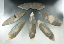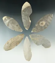 Set of six Hornstone Cache Blades, largest is 4 1/8". From the Lyons Cache - Greene Co., Indiana. INDIANA 225.00