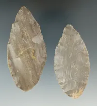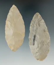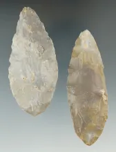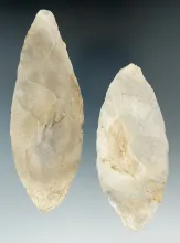 Pair of Hornstone Cache Blades, largest is 3 5/16". From the Lyons Cache - Greene Co., Indiana. INDIANA 90.00