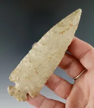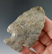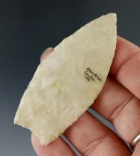 Exceptional flaking on this 3 1/8" early blade with nicely ground lower edges and base found in Utah