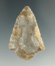 Nicely flaked and well styled 2 5/16" dart point made from Indiana Green Flint. Found in Indiana. | INDIANA | 45.00 | |