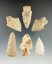 Set of 6 Assorted Indiana Arrowheads, largest is 2 3/8". | INDIANA | 40.00 | |