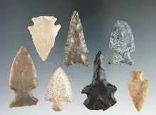 Set of seven assorted arrowheads found in Rush Co., Indiana, largest is 2 1/16". | INDIANA | 60.00 | |