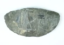 Large and well patinated 6 1/2" long Full groove Axe found in Allen Co., Indiana in 1943. | INDIANA | 300.00 | |