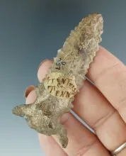 4 7/16" Paleo Fluted Clovis - professional restoration to tip area.Tennessee. Ex. Noel. Bennett COA.