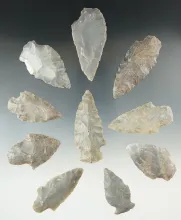 Set of 10 assorted points found in Livingston County Tennessee. Largest is 2 5/8". |