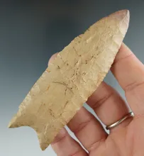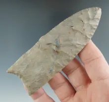 Exceptional flaking and style on this thin 4" Paleo Knife found in Hardin Co., Tennessee. TENNESSEE 120.00