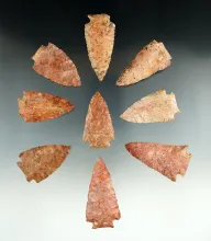 Cache of 9 Bentons made from red Jasper, found in Tennessee. Comes with a Davis G-9 COA. |