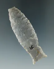 2 13/16" Beautifully flaked Paleo Unfluted Cumberland or Beaver Lake- Western Kentucky. |